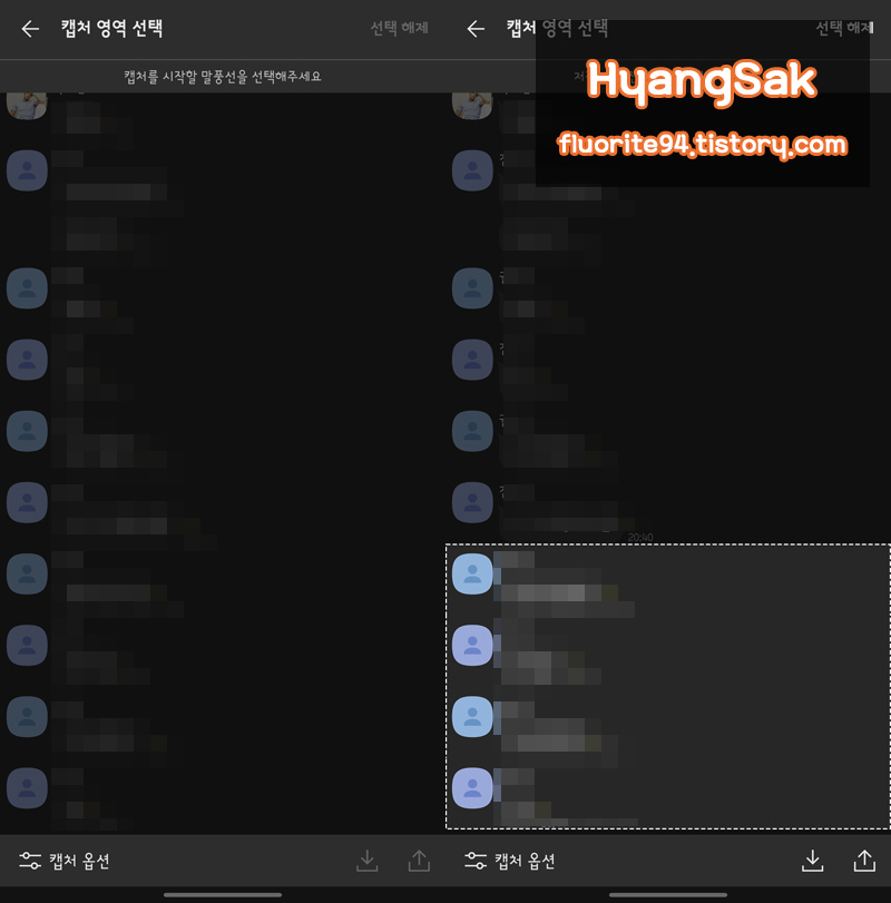 원하는 대화 내용 영역을 선택했다면 아래 캡처 옵션을 선택합니다.