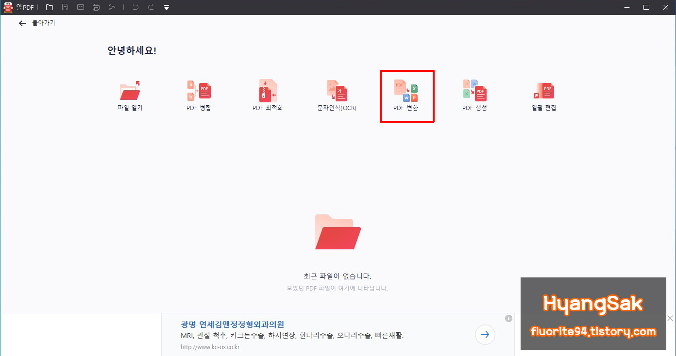 설치가 완료되고 알PDF 프로그램을 실행하면 위와 같은 화면이 나옵니다.