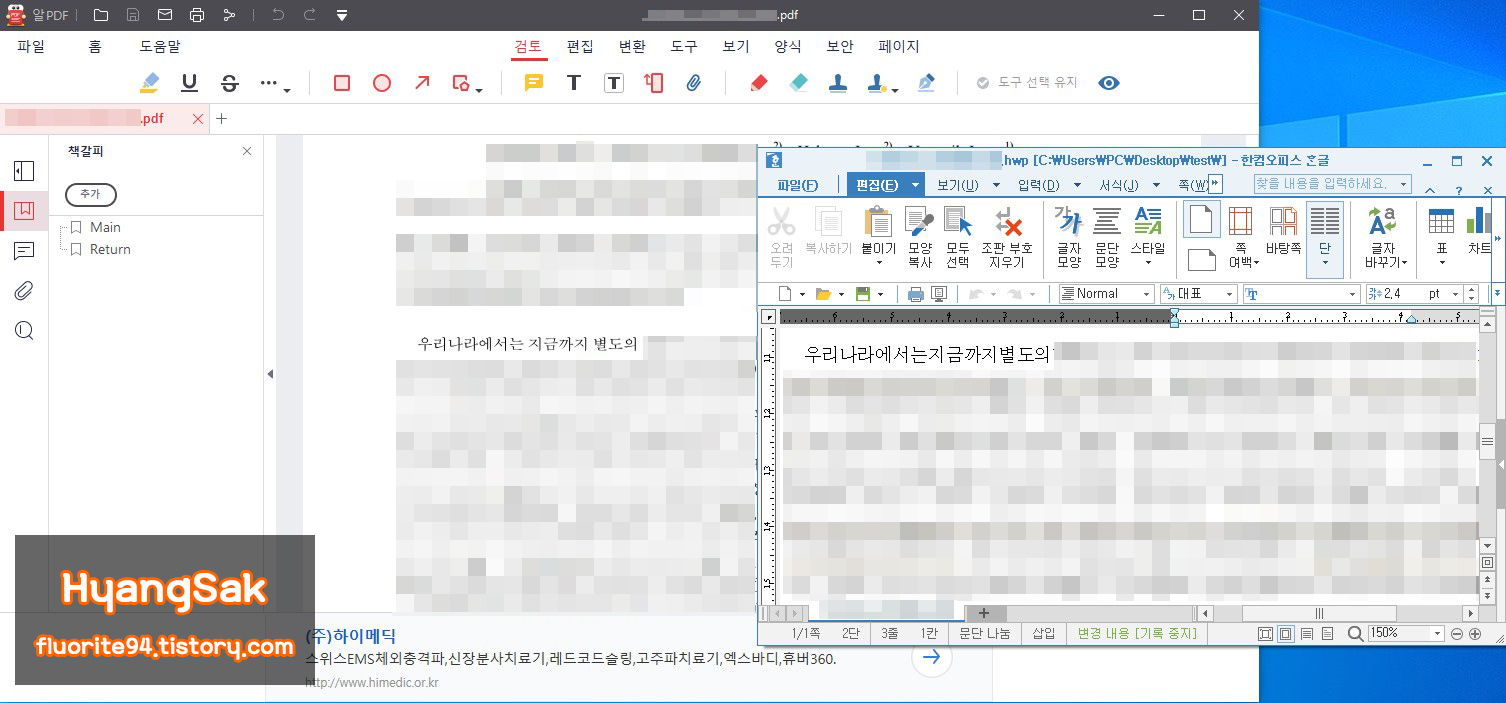 위 방법도 있지만 알PDF 프로그램을 이용해서도 간편하게 작업할 수 있네요.