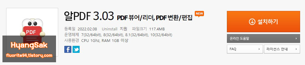 우선 알PDF뷰어 공식 다운로드 사이트에 들어가서 프로그램을 설치합니다.