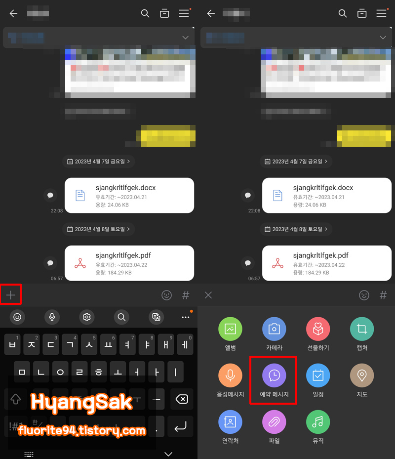 먼저 채팅창에 위치한 + 버튼을 눌러주세요.