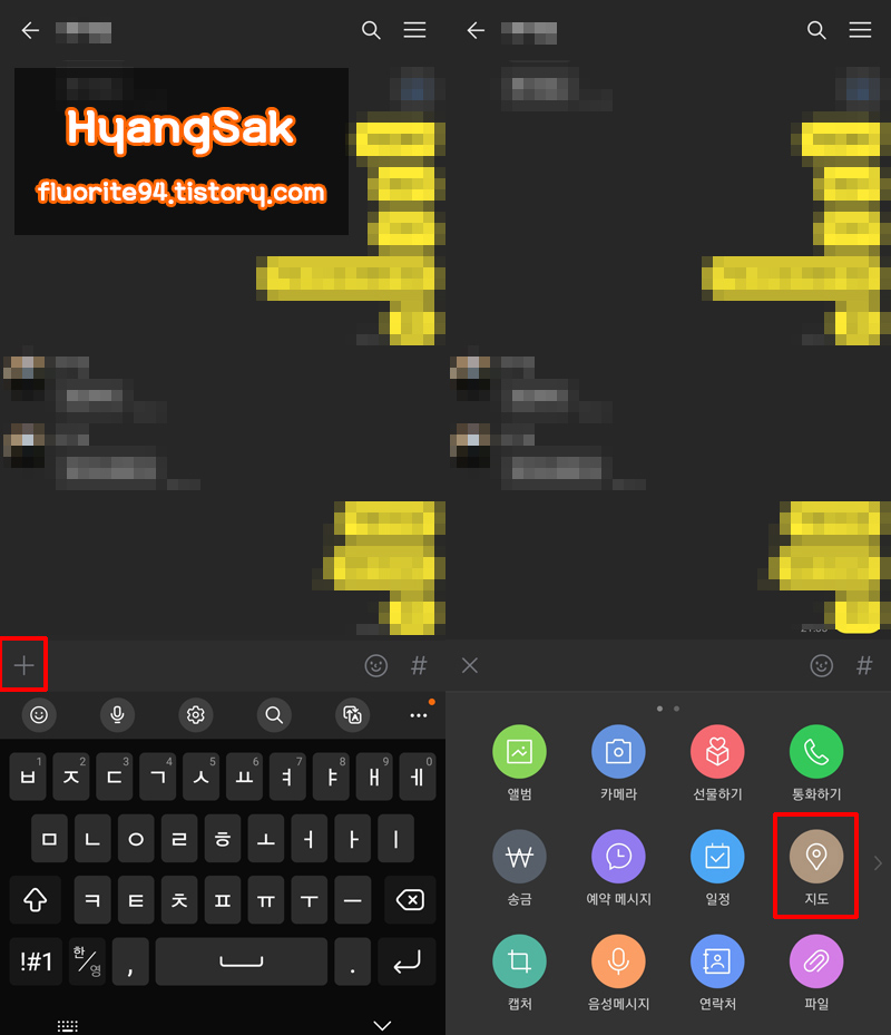 우선 채팅창 하단에 보이는 + 버튼을 눌러줍니다.
