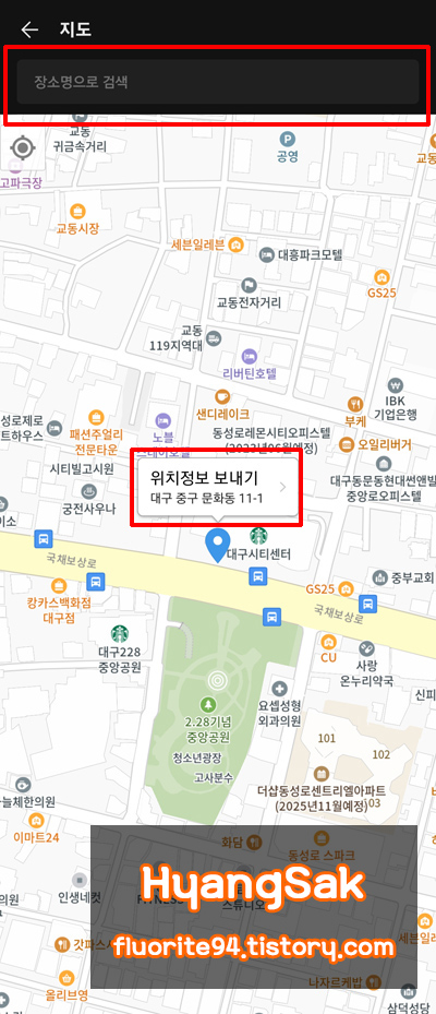 여기서 위치 정보 보내기를 눌러 바로 채팅방에 내 위치를 공유할 수도 있고