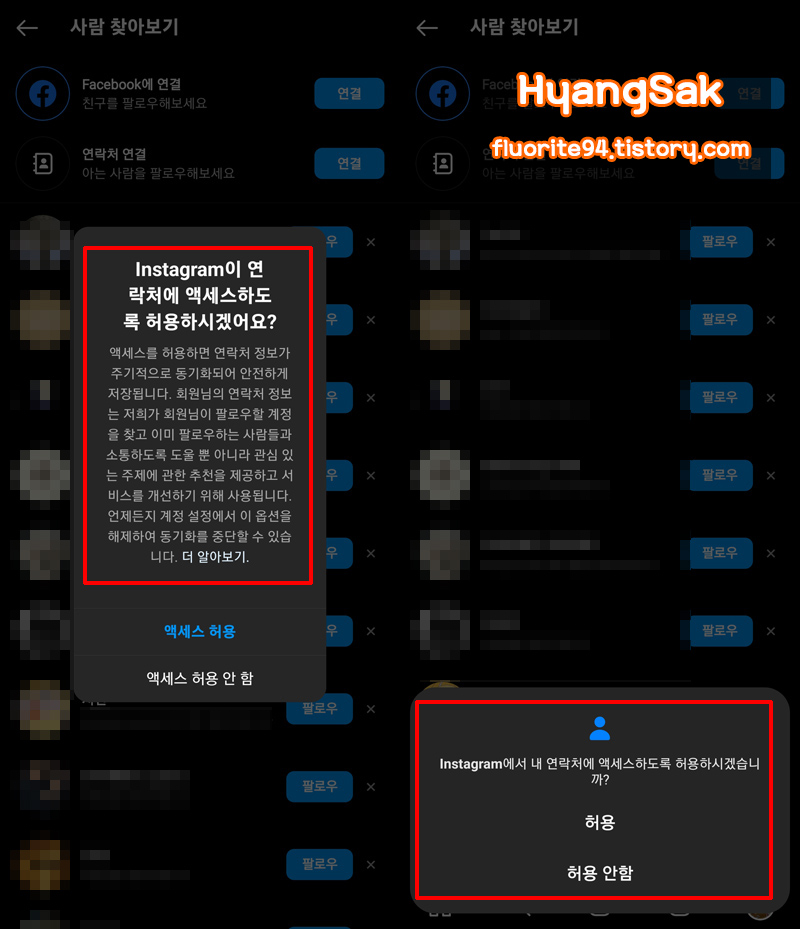 연락처를 동기화하면 팔로워, 팔로잉을 늘릴 수 있고