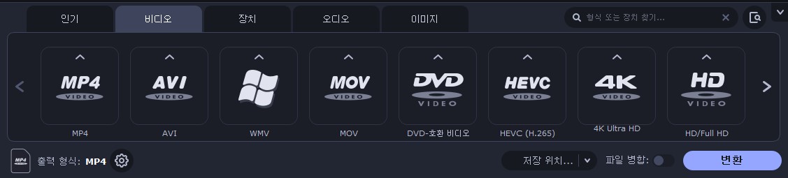 iPhone, iPad, Android 기기, Apple TV, Samsung TV 등 다양한 기기에 최적화된 형식으로 변환할 수 있습니다.