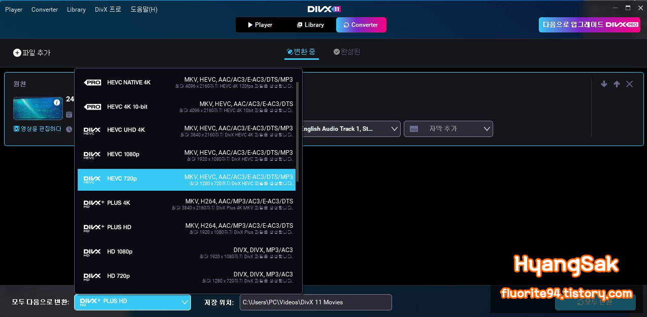 동영상 변환 프로그램의 단점중 하나인 형식을 변경하였을 때에 화질이 깨지는 경우가 많은데,