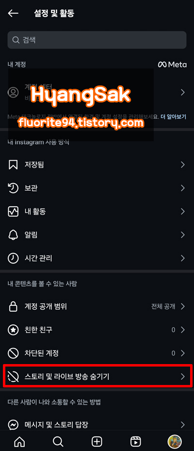 이번 포스팅에서는 특정 사용자를 지정하여 내 스토리를 숨기는 방법과