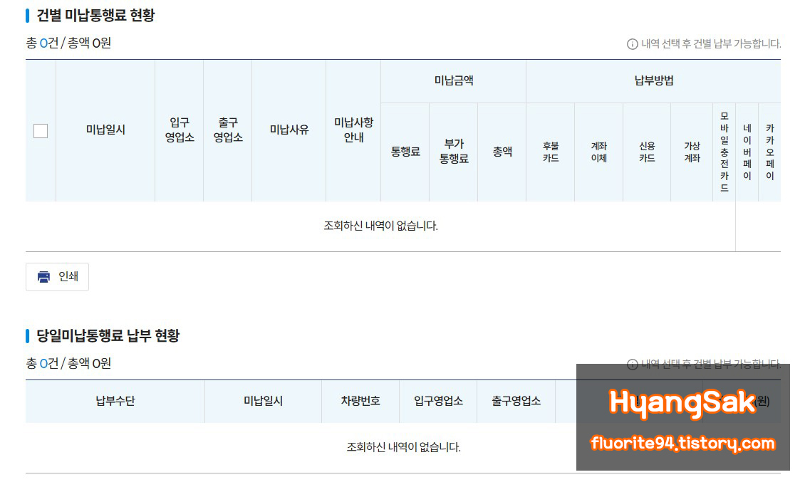 단, 미납 요금이 없거나, 접속한 계정과 차량 명의가 다르다면 조회되지 않습니다.