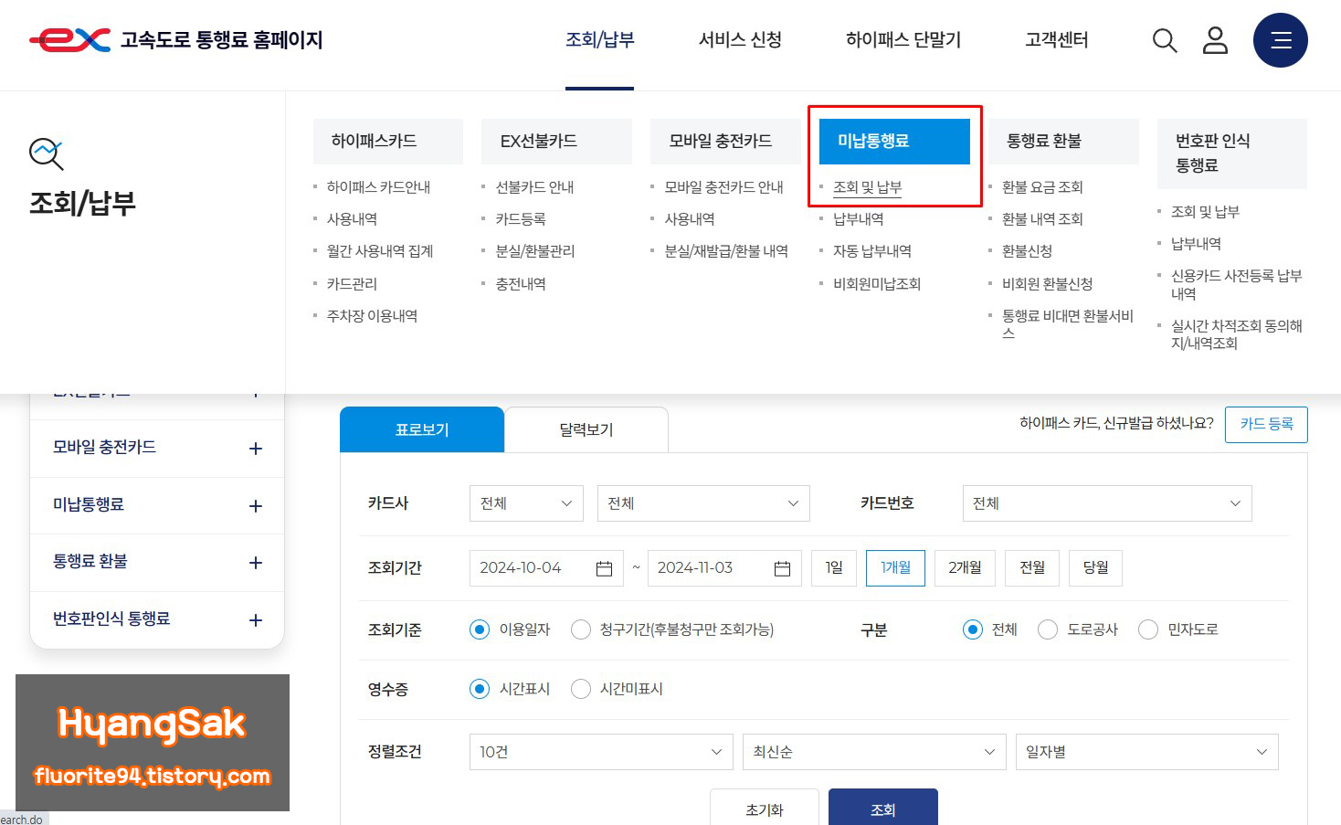 이번 포스팅에서는 하이패스 사용 내역 조회하는 방법과