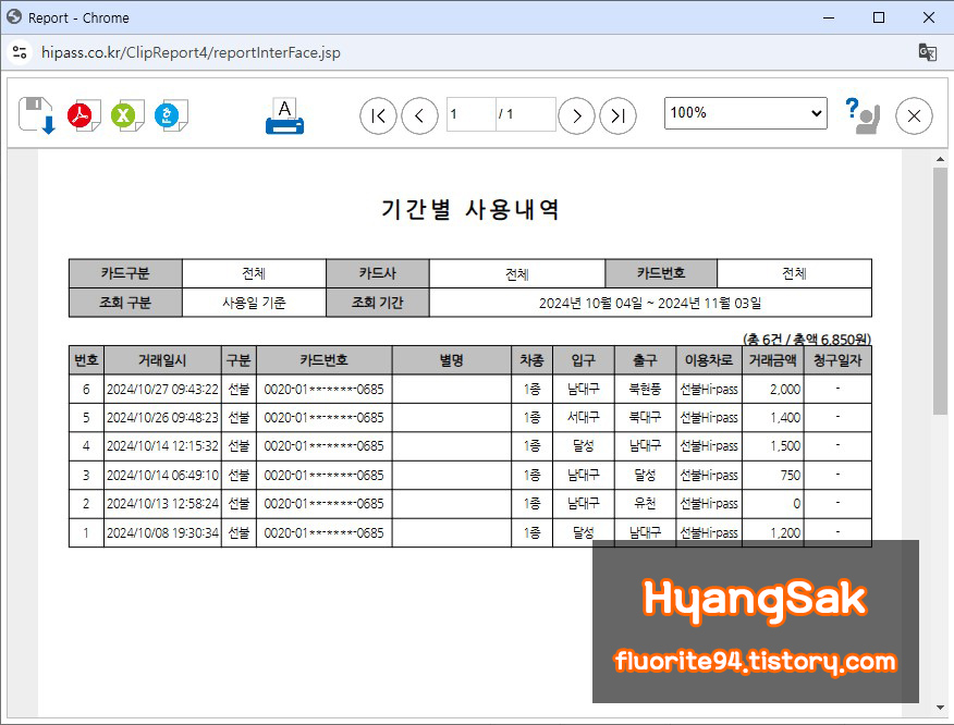 출장비 정산을 위해 하이패스 사용 내역을 회사에 제출해야 하는데요.