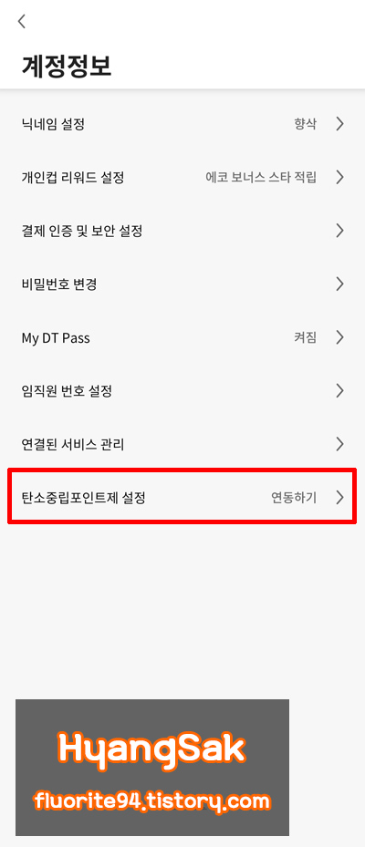 계정정보에 들어오면 아래에 [탄소중립포인트제 설정]이 있는데요.