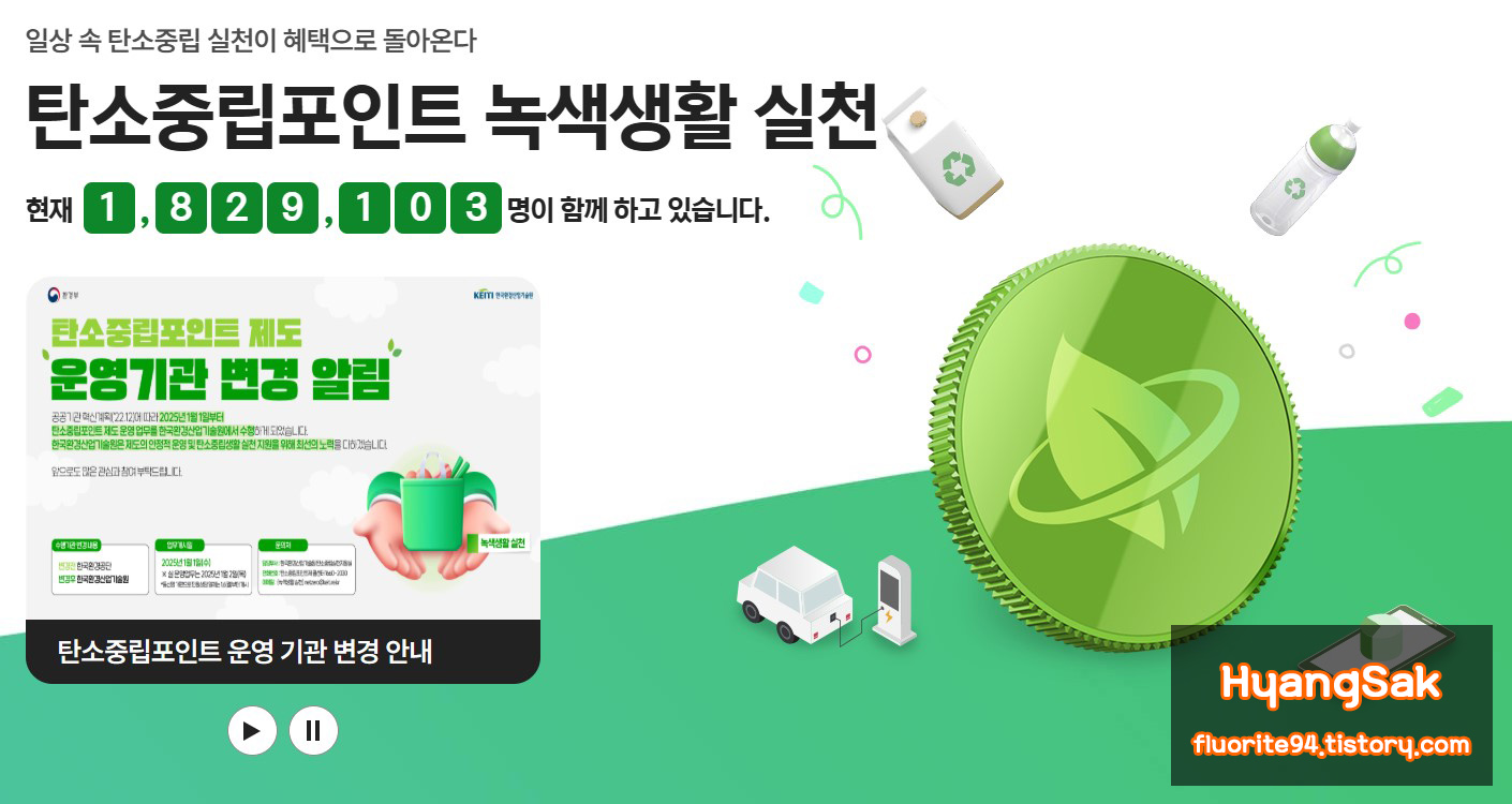 일상 속 탄소중립 실천이 혜택으로 돌아온다 탄소중립포인트 녹색생활 실천 현재 1829166명이 함께 하고 있습니다.