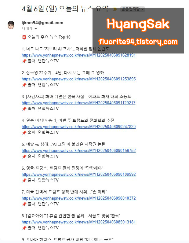 매일 주요 뉴스 10개를 요약해서 메일로 받아보는 시스템을 만들어봤습니다.