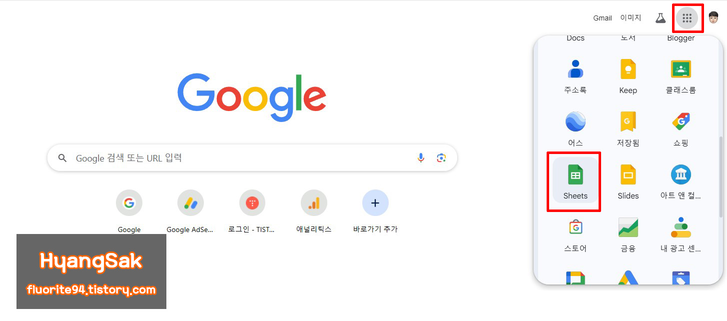 계정에 로그인한 다음 구글 앱스에서 시트를 찾아 실행합니다.